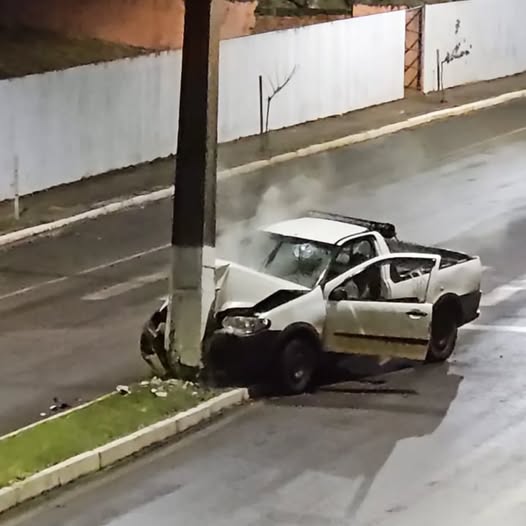 COLISÃO AUTOMÓVEL CONTRA POSTE NA AVENIDA 16 DE NOVEMBRO. SEM INFORMAÇÕES SOBRE FERIDOS.