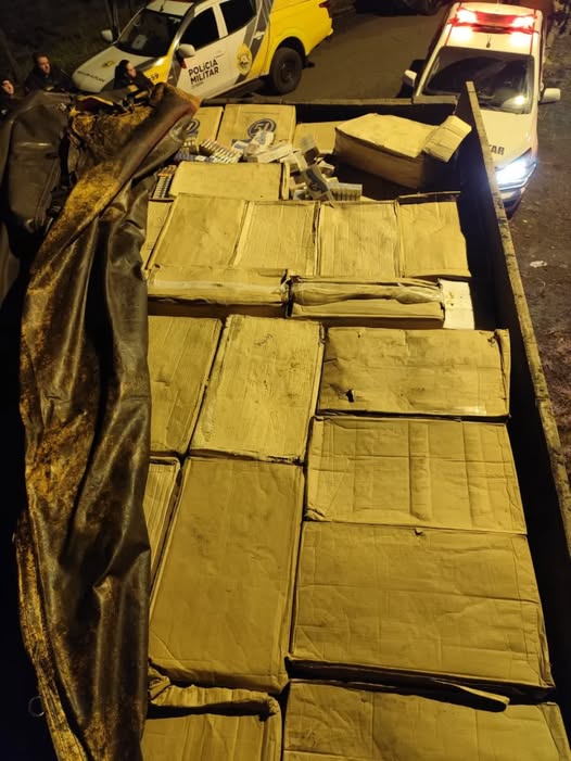 CAMINHÃO COM ADESIVO DO DNIT É FLAGRADO COM CONTRABANDO DE CAMARÃO E CIGARROS Um caminhão…