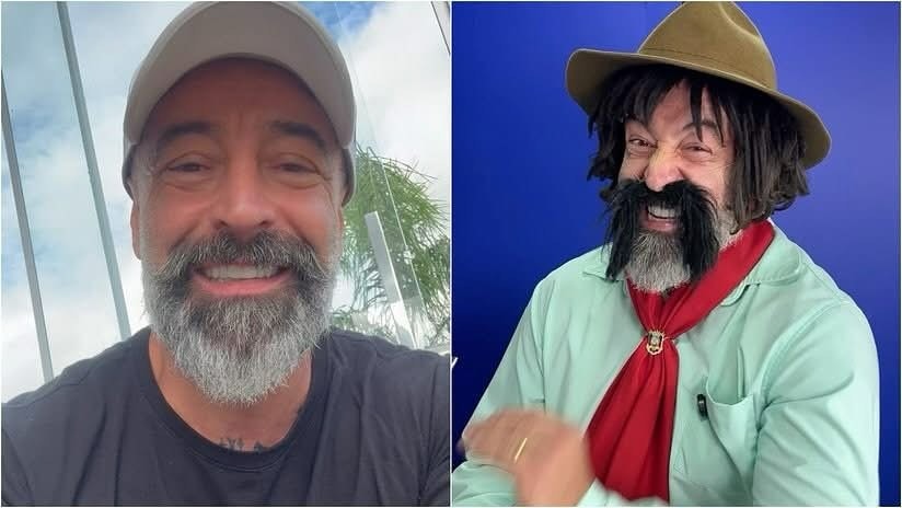O humorista Cristiano Pereira, que interpreta os personagens Jorge da Borracharia e Gaudêncio em A…