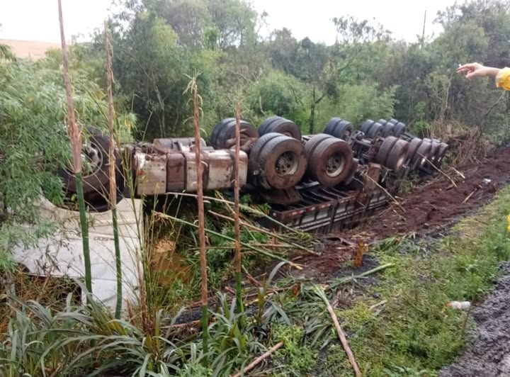 CAMINHÃO CARREGADO COM MILHO. SEM INFORMAÇÕES SOBRE FERIDOS.