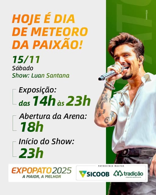 Expopato Hoje o meteoro cai com tudo em Pato Branco, Luan Santana sobe ao palco…