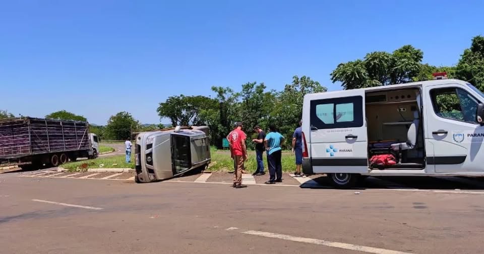 Caminhonete capota após colisão com caminhão de aves na PR-180. Por volta das 11h desta…