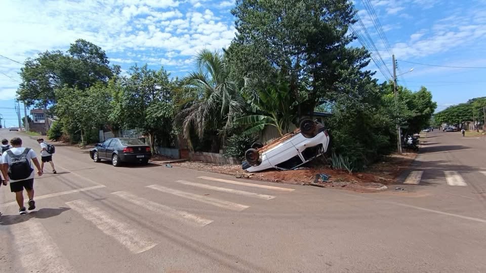Colisão seguida de capotamento no Bairro Jardim da Colina em Dois Vizinhos.