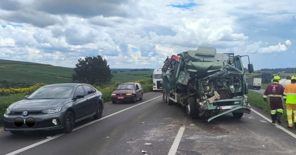 Múltipla colisão na PR-493 envolve dois caminhões, van e carro-forte. Apesar da gravidade do acidente,…