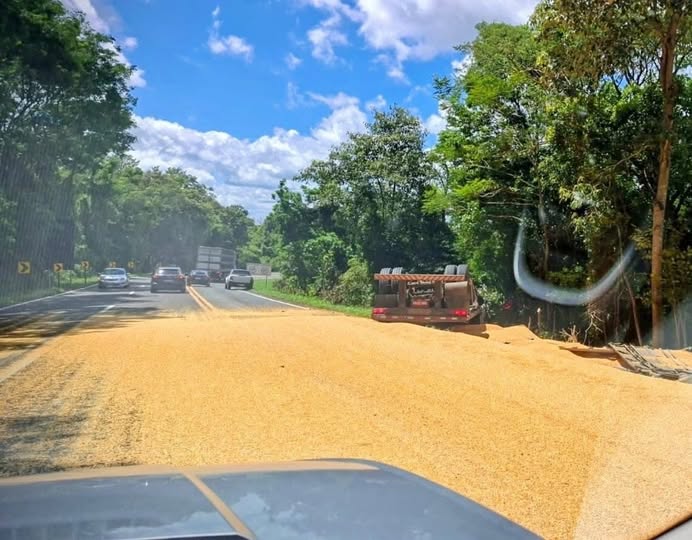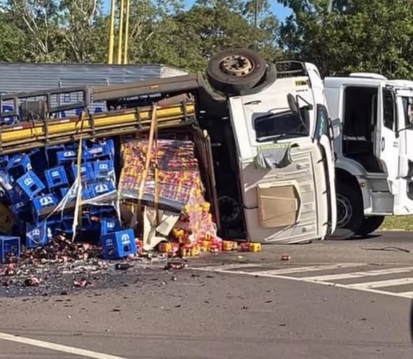 Tombamento de caminhão carregado com bebidas na frente da Havan, Francisco Beltrão, sem vitima fatal.