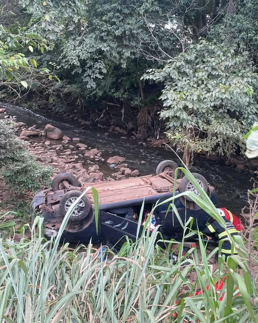 Veículo capota e cai no Rio dos Queimados. O Corpo de Bombeiros Voluntários de Concórdia…