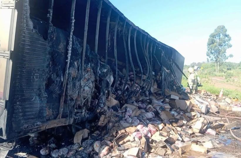 Câmara fria é destruído por incêndio na BR-163. Um caminhão câmara fria foi destruído por…