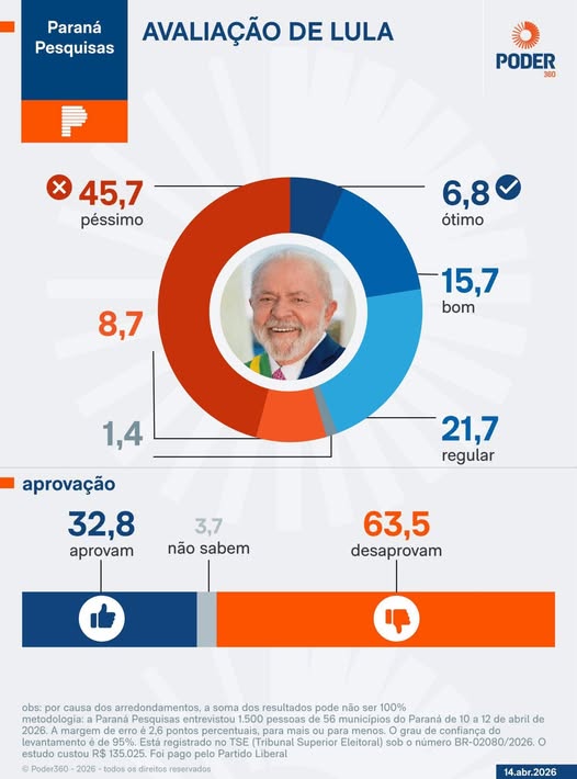 Desaprovação do governo Lula chega a 63,5% no Paraná…
