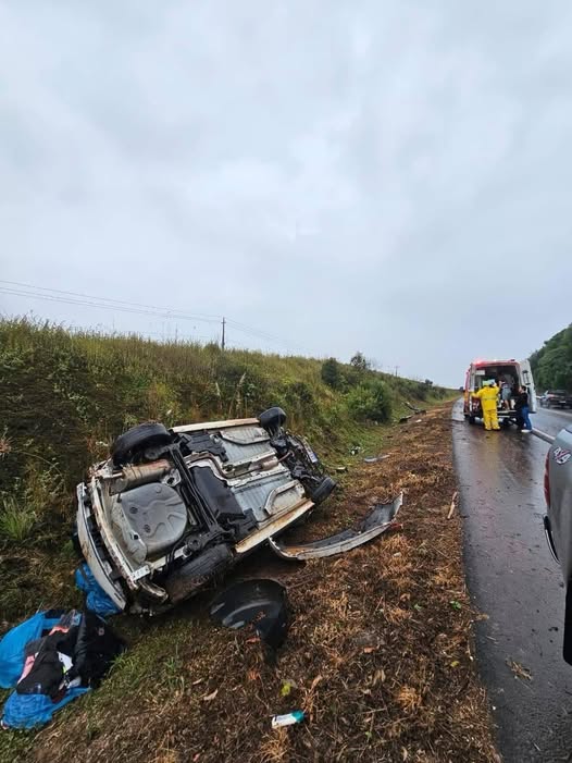 Capotamento na BR-282 deixa três jovens feridos em Vargeão.