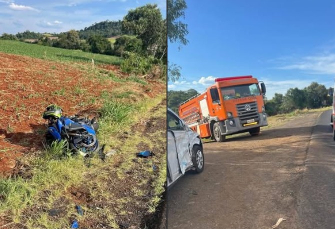 Tragédia na PR-475: colisão entre moto e carro termina com morte de motociclista.
